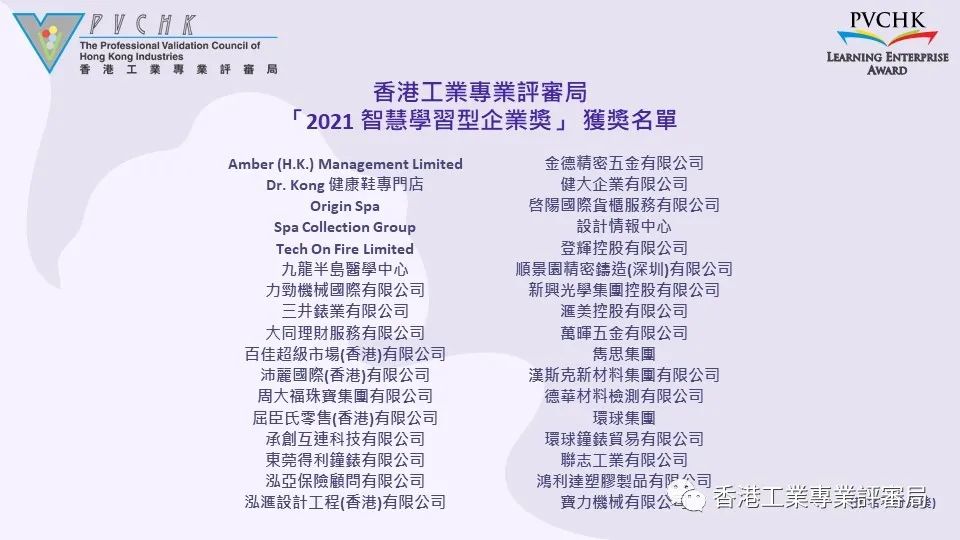 2015年,香港工業專業評審局創立了“智慧學習型企業獎”,獎項每兩年頒授一次,今年是第四屆評審。智慧學習型企業獎,旨在表揚那些在推動學習文化中,建立學習體系,有效轉化并取得優良成果的企業。